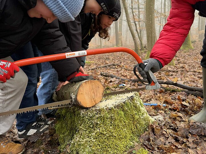 Mit Bügelsäge und Teekessel durch den Winterwald - zweiter Waldtag der vierten Klassen
