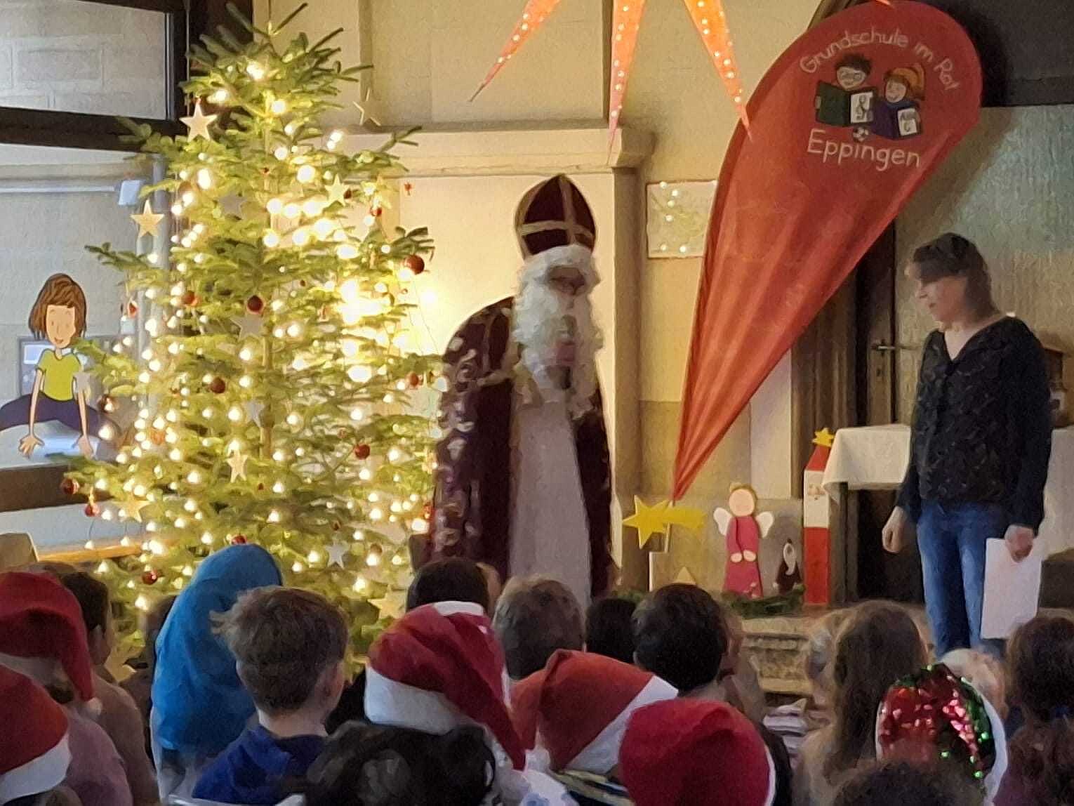 Am 8. Dezember hatten wir einen ganz besonderen Gast bei uns. Unter dem Motto „Lasst uns froh und munter sein“ feierten die Erst-, Zweit-, Dritt- und Viertklässler den Besuch des Nikolauses in der schön geschmückten Aula mit Gesang, Verkleidung, Gedichten, Lese- und Instrumentalstücken. Der Nikolaus war mit den Darbietungen der einzelnen Klassen sehr zufrieden und verschenkte Schokonikoläuse. Diese wurden durch den Förderverein der Grundschule finanziert, was alljährlich den Nikolaustag in der Schule zusätzlich versüßt. Herzlichen Dank an den Nikolaus und die großzügige Spende unseres Fördervereins! Diesen Tag werden unsere Grundschüler bestimmt in guter Erinnerung behalten. Noch heute wird gerätselt, wer wohl dieser liebe, gute Nikolaus war…